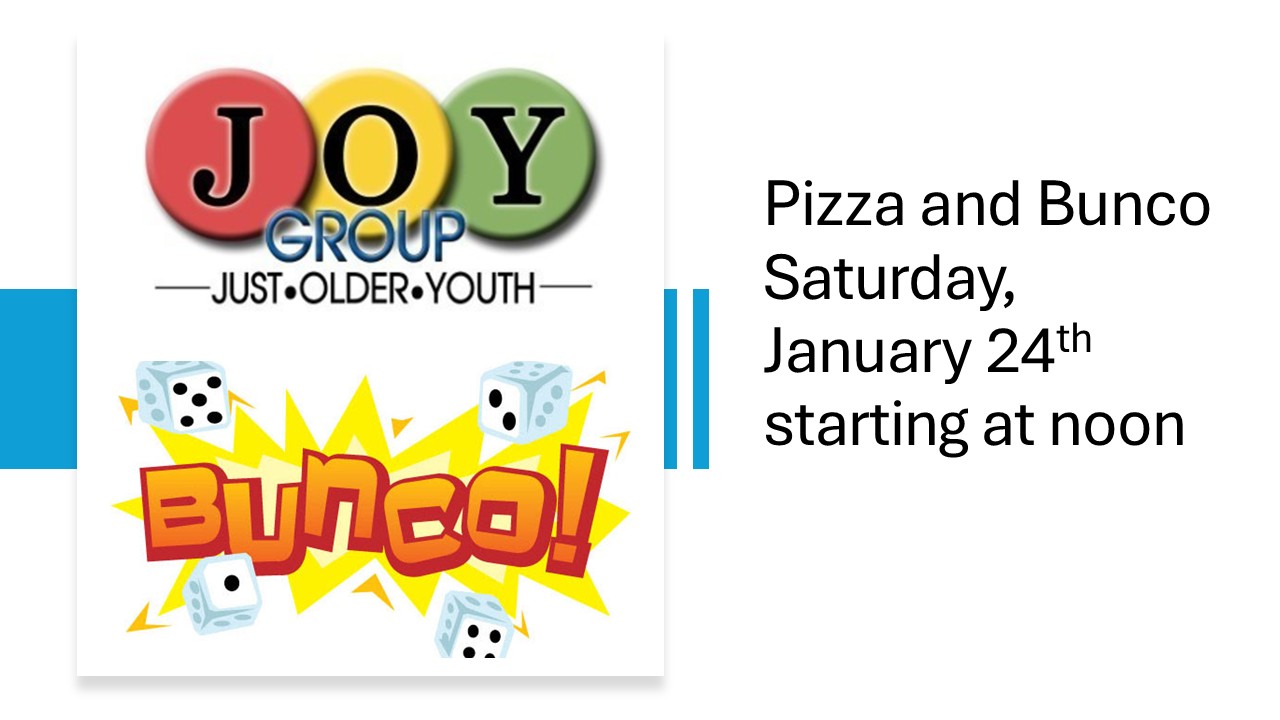 The J.O.Y. group is for members and friends of Avery Church of any age who are young at heart. We meet to enjoy Christian Fellowship through bible studies, potlucks, progressive dinners, game nights and other fun activities.